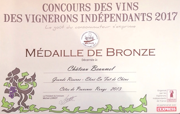 Médaille de Bronze, Concours des Vins des Vignerons Indépendants 2017